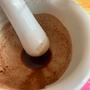 アボカドの皮と種からインクをつくりました。 顔料の色とは裏腹に、メディウムと混ぜると濃い茶ピンクになりました。